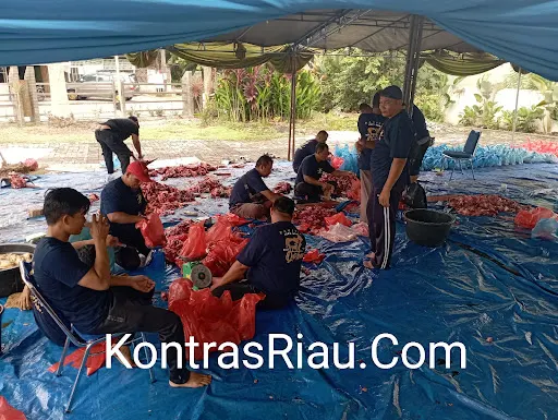 PEKANBARU - KontrasRiau.Com - Kepala Dinas PUPRPKPP Provinsi Riau melalui Sekretaris Dinas PUPRPKPP Ferry Yunanda, MT menyampaikan bahwa Qurban tahun ini 1445 H, PUPRPKPP Riau menyembelih 11 Ekor Sapi, dengan jumlah peserta Qurban sebanyak 77 orang yang berasal dari para pegawai kantor PUPRPKPP Provinsi Riau, dan jumlah kantong daging Qurban kali ini lebih kurang sebanyak 860 kantong." Ujarnya.